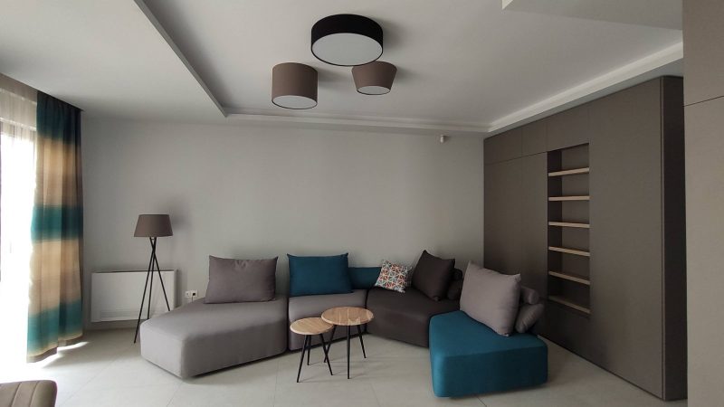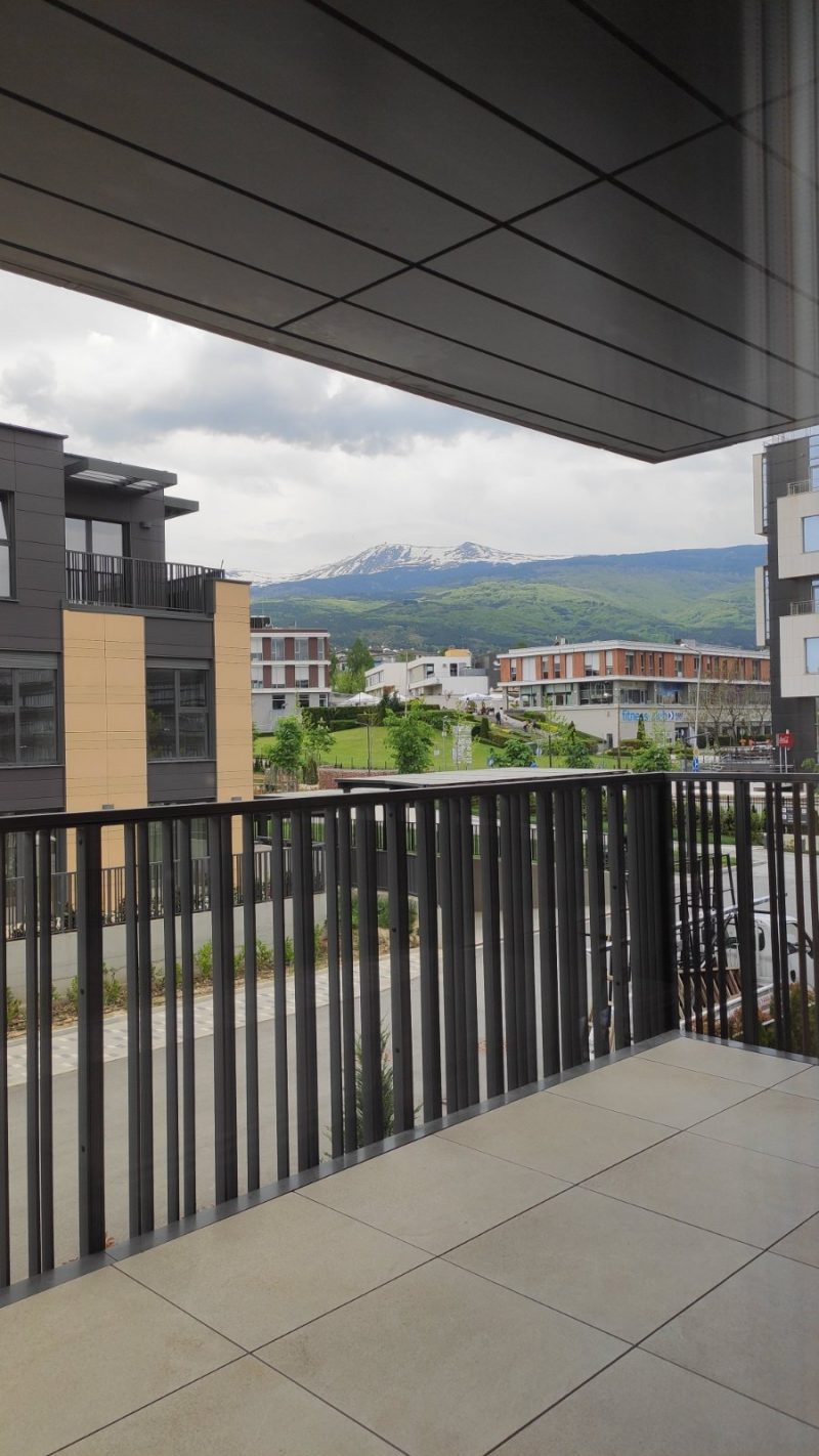 Bright, modern 2-bedroom apartment in Garitage Park, located on the 1st floor above ground level, featuring two parking spaces, a contemporary open-plan living area, and a spacious terrace with a beautiful Vitosha Mountain view.